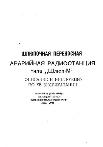 Шлюпочная переносная аварийная радиостанция типа 'Шлюп-М'. Описание и инструкция по её эксплуатации