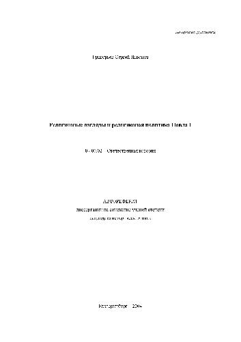 Религиозные взгляды и религиозная политика Павла I(Автореферат)